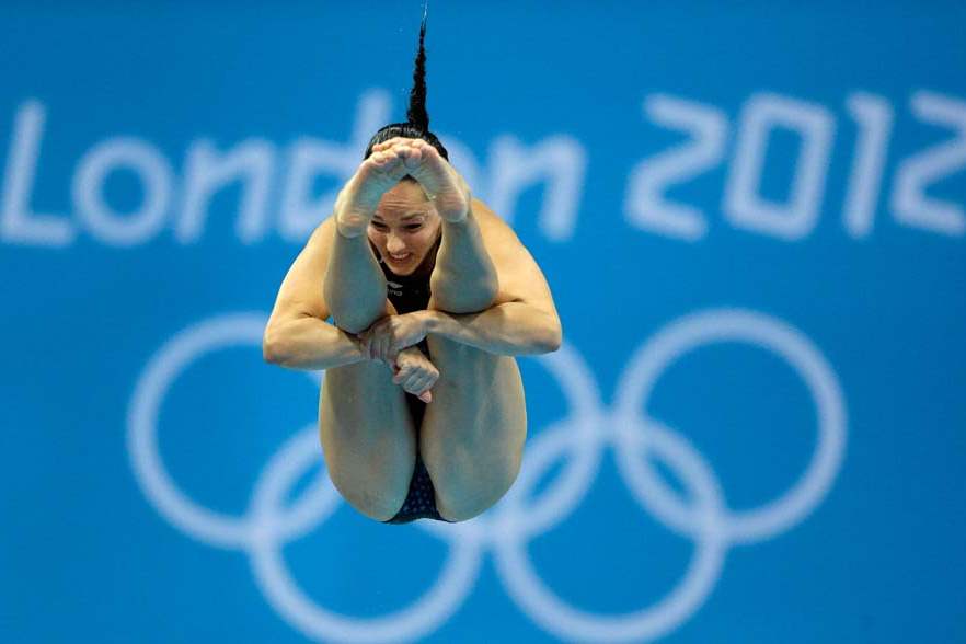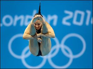 Christina Loukas from the US competes during the women's 3-meter springboard diving final at the Aquatics Centre.