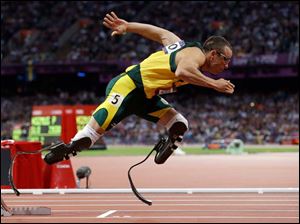 South Africa's Oscar Pistorius starts in the men's 400-meter semifinal.