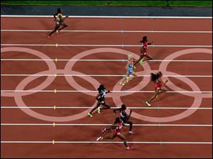 Sanya Richards Ross from the U.S. leads the women's 400-meter final during the athletics competition.