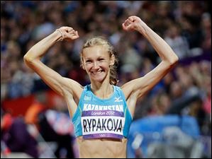 Kazakhstan's Olga Rypakova celebrates winning gold in the women's triple jump final.