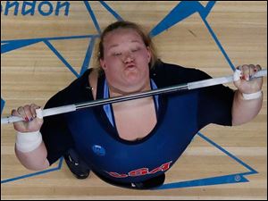 United States' Holley Mangold competes during the women's over 75-kg, weightlifting competition.
