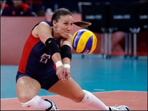 United States' Nicole Davis reaches for the ball during a women's preliminary volleyball match against Turkey.