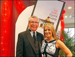 Event chairmen Kevin Kwiatkowski and Stephanie Kuhlman enjoy the Oscar Party in the Center for Performing Arts at Owens Community College.