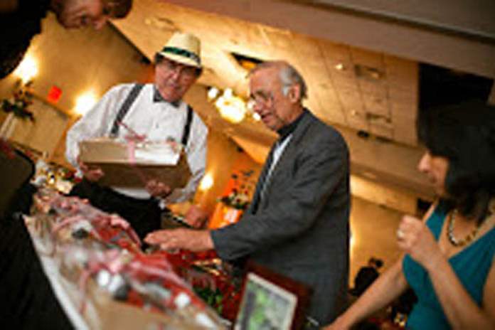 Dr. Ted Barber, chief of staff at Mercy St. Anne Hospital and host of the staff gala, selects winners for door prizes.