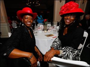 Jackie Oehlers, left, and Lori Twinning at the Run for the Roses Derby Party at the Toledo Museum of Art.