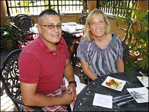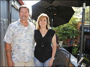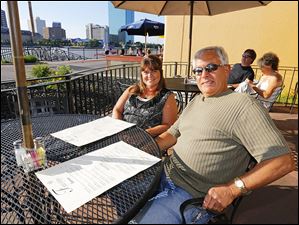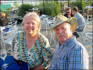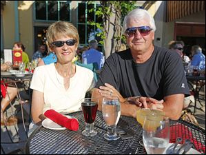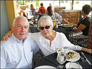 John Luscombe and Carol Imes-Luscombe, Maumee, enjoy dinner on the patio at DeGage Cafe.