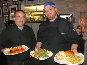 Mike Graber, a co-owner of Social, left, and executive chef Jeff Dinnebeil show off specialties of the Perrysburg restaurant.