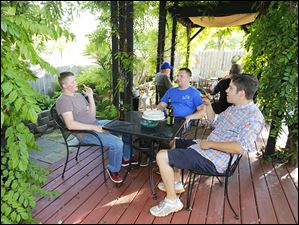 Justin Zeisloft, Perrysburg, left, Kevin Davis and John McFarland, right, both of Bowling Green, enjoy a cigar in the Cigarden at Cigar Affairs in Maumee.