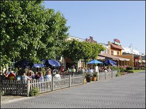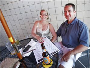 Phil Carothers and Ann Stoiber, both of Perrysburg, enjoy the new restaurant's outdoor patio.