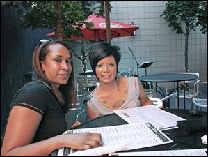 Ashley Hollingshead, of Dundee, Mich., left, and friend Melissa Larocca, of Petersburg, Mich., look over the menu at Bar 145.