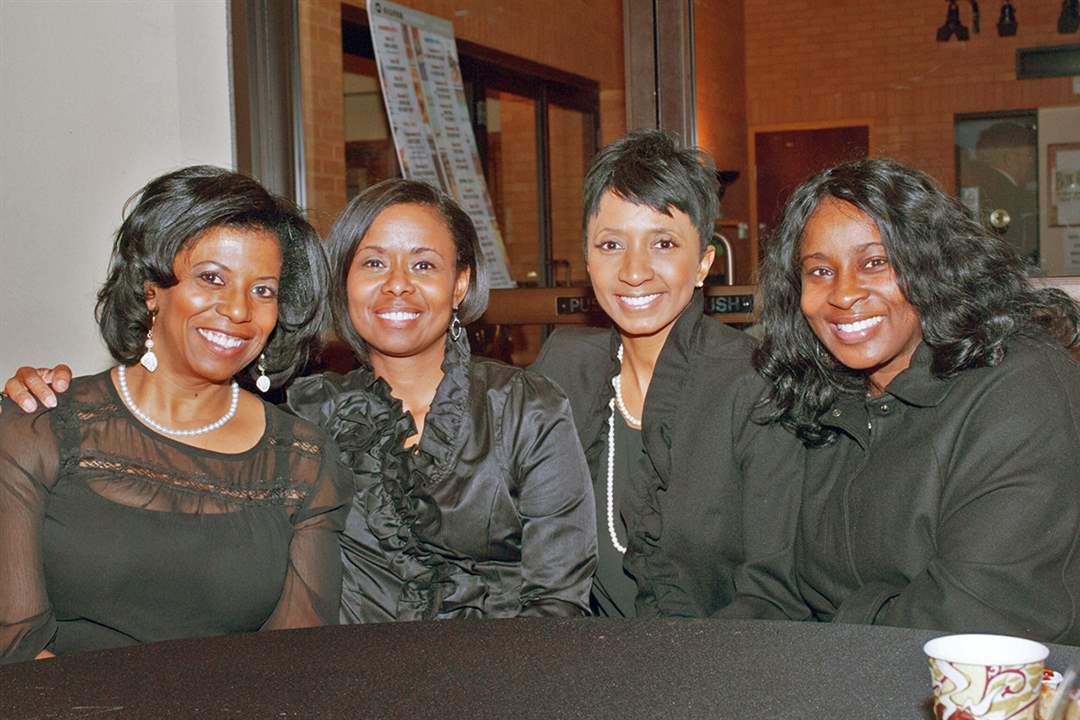 From left, Richelle Watkins, Deborah Porter, Tonya Rider and Kerry Emery attend the Chocolate Soiree presented by the Junior League of Toledo.