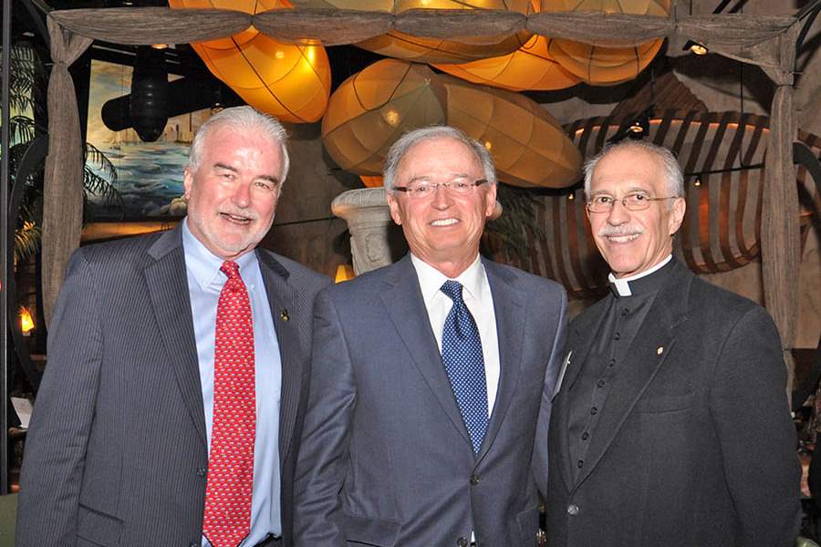 Joe Sweeney, Darryl Roberts and Father Olszewski at the St. Francis de Sales Knight of the Vine benefit.