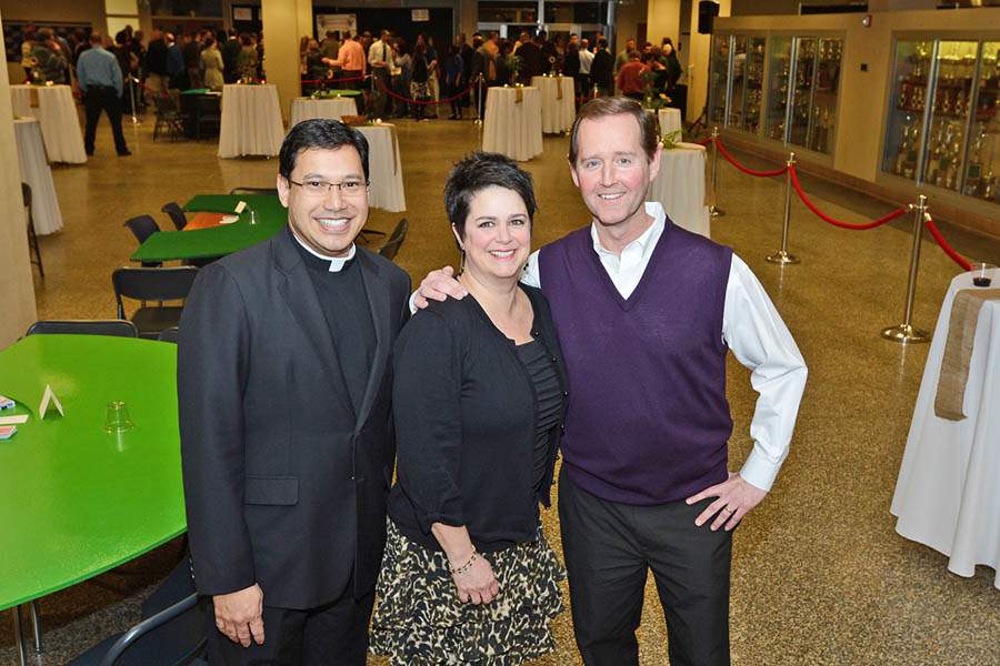 Leaders of the St. John’s Jesuit Titans in Tuscany included, from left, Rev. Joaquin Martinez, St. John’s Jesuit president, left, with event chairmen Jo Ann and Kevin Savage (’79).
