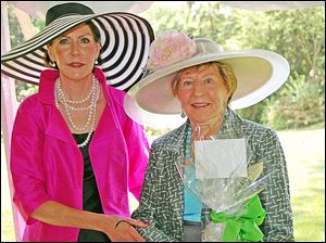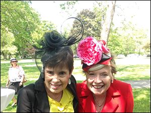 Susan Palmer and Diane Rusk sporting Jill Henning hats at Crosby Garden Awards.