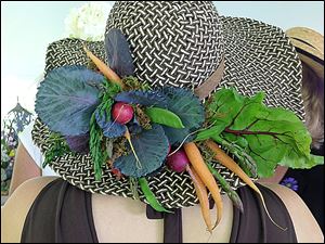 Molly Reams Thompson, shows the back of her lovely hat made just for the occasion at the Crosby Awards. She was one of the awardees, and among other accomplishments, works for Veggie U.