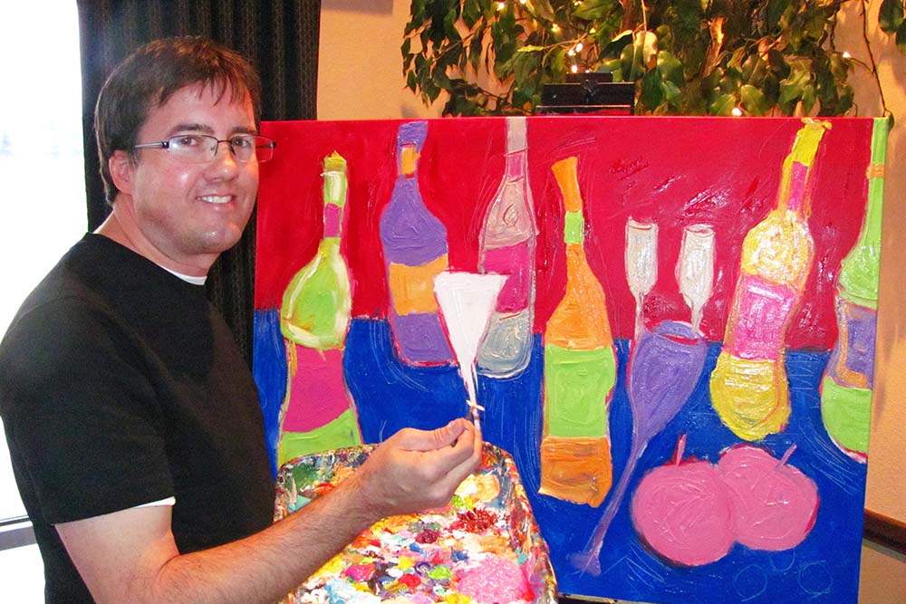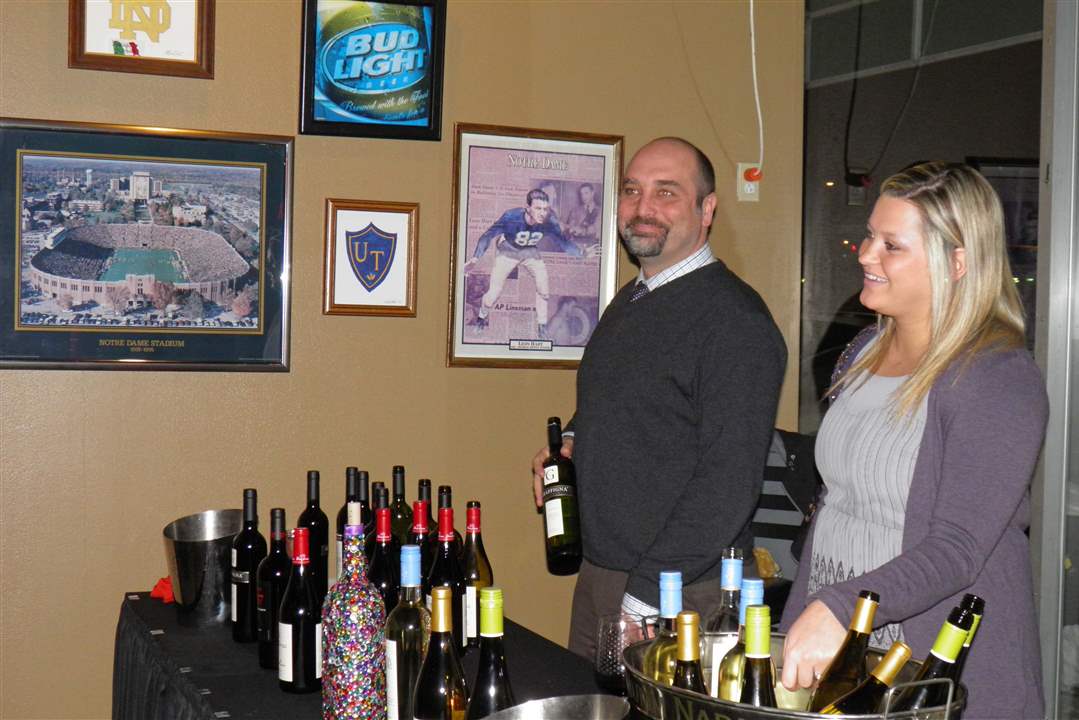 John Venglascik and Becky Albright enjoy hors d'oeuvres before the dinner and auction.