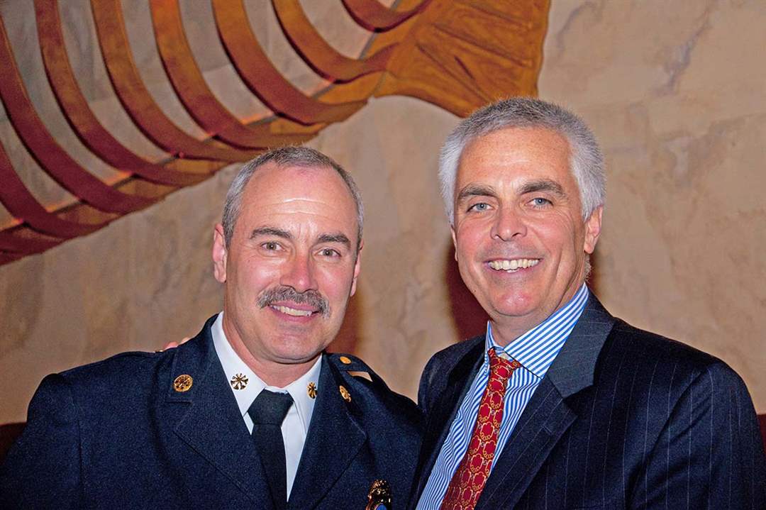Classmates Phil Cervantes, the Deputy Fire Chief for the Toledo Fire Department, and Mike Pfeiffer share a laugh.