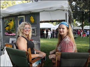 Penny Dobson, of Rome, Ga., a painter, left, and Maureen Roberts, of New York City, a wearable fiber artist at the Preview Gala for the 49th Annual Crosby Festival of the Arts in Toledo.