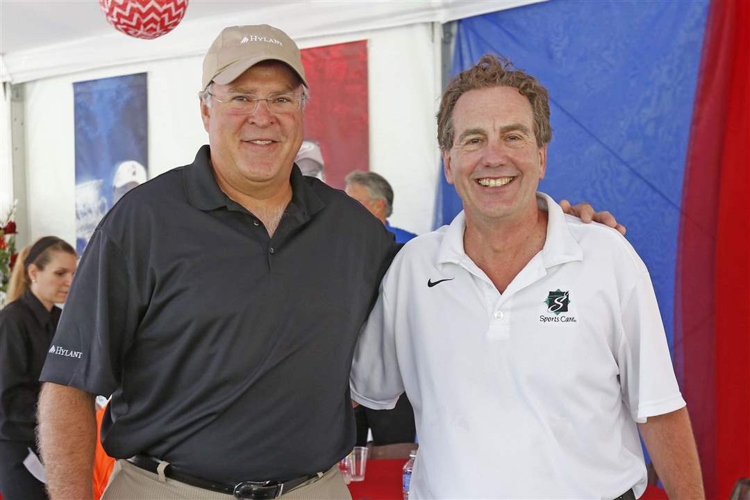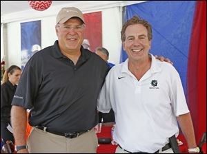 Tom Martin and Mike Hart outside the Champion's Pavilion during the Pro-AM at Highland Meadows Golf Club in Sylvania.