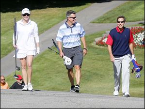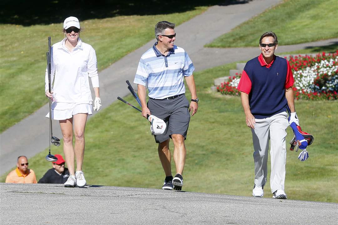 Lauren Vancheri, left, Todd Crandall, center, and Greg Palesano, right, during the Image Group Pro-Am Foursome at Sylvania Country Club.