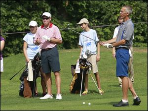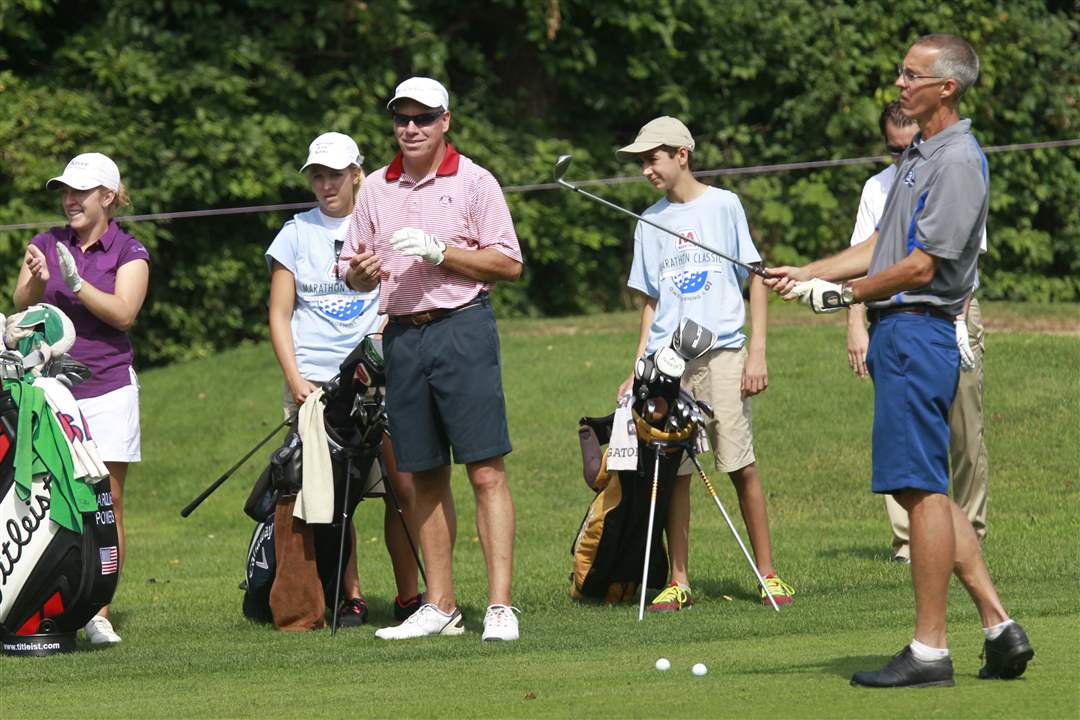 Club Pro Jason Stuller accounts the rules of the match during the Image Group Pro-Am Foursome at Sylvania Country Club.