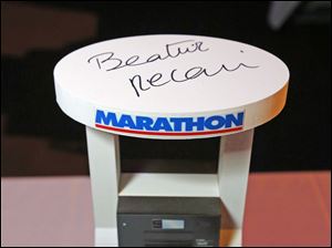 A Beatrice Recari autographed tee marker at the Hollywood Casino Gala Dinner & Show for Marathon Classic at SeaGate Centre.