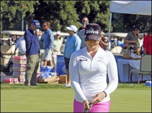 LPGA Pro Anya Alvarez putts during the KeyBank Putting Pro-Am.