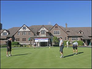 Golfers putt in front of the country club during the Image Group Pro-Am Foursome at Sylvania Country Club.