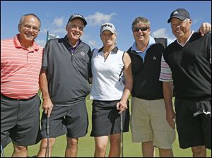From left: Chuck Woodmancy, Dan Galway, pro Jacqui Concolino, Todd Esser and Rick Niehaus, during the Health Care REIT/Brooks Insurance Pro-Am at Inverness Club in Toledo.