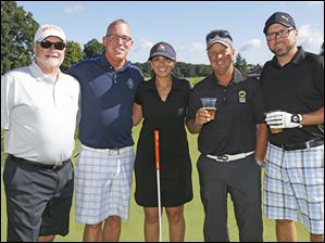 From left: Tom McHugh, Ed Beczynski, pro Nicole Hage, John Hoschak and Jeremy Fitzgerald at the Health Care REIT/Brooks Insurance Pro-Am at Inverness Club in Toledo.
