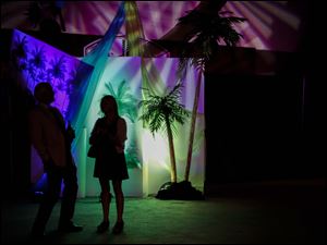 A woman walks across the lighted floor at the Hollywood Casino Gala Dinner & Show for Marathon Classic at SeaGate Centre.