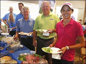 Pro Veronica Felibert with PNC's Bill McDonnell during lunch for the 2014 13abc/PNC Pro-AM at Highland Meadows Golf Club in Sylvania.