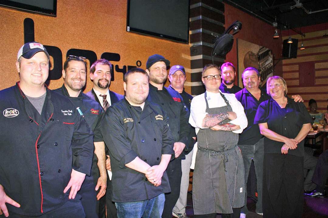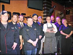 Chefs up for bid were, from left: Chef Eric Kish, Rosie's - Chef Matt Lawrence, Mancy's Italian - Mark Maruszak, Elements 112 - Chef Daniel Tankoos, Sundown Cantina - Chef Tim Childers, Rockwell's - Chef Brett McIntosh, Treo - Chef Robby Lucas, Bar 145 - Chef Rob Campbell, Revolution - Chef Bruce and Tracy Saba, Sabo's Bistro 1705. Bidding netted $17,900.