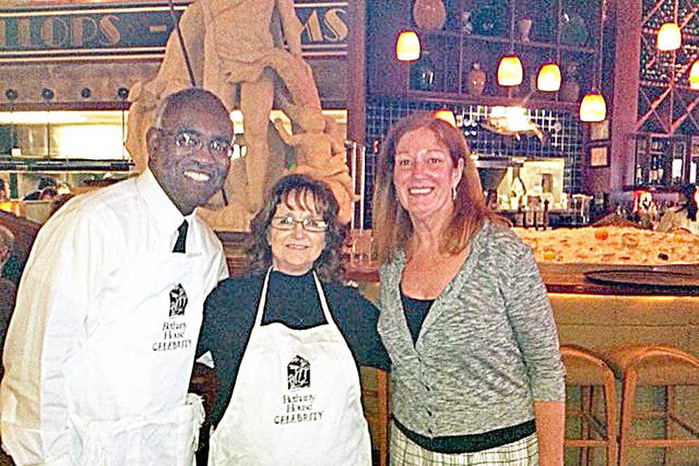 Bethany House board chairman Art Jones, with drector Kathy Griffin, and the organization's celebrity wait night event chairman Kim Marion pause for a moment at the event for a photo.