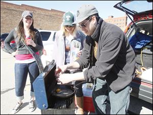 Andy Fillis, left, and Ryan Walline enjoy tailgating festivities before the game.