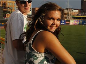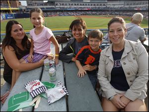 Amanda Wertz, holding Kaveya Wertz, 4, both of Maumee, Serena Chow, of Northwood, and Rose Sortor, of Maumee, attend a recent Mud Hens game at Fifth Third Field.
