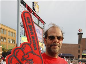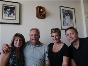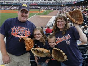 The Johncox family, from left, Justin, Mackenzie, Hunter and Kellie, bring their gloves to Fifth Third Field.