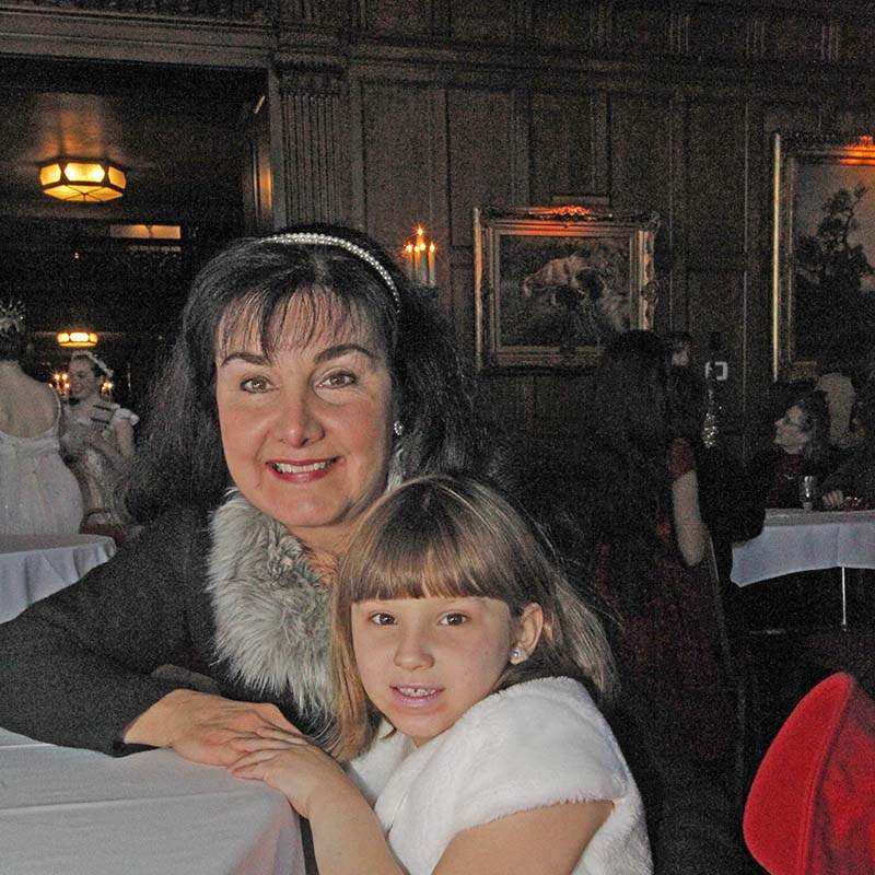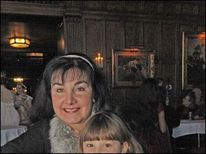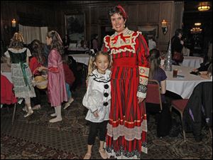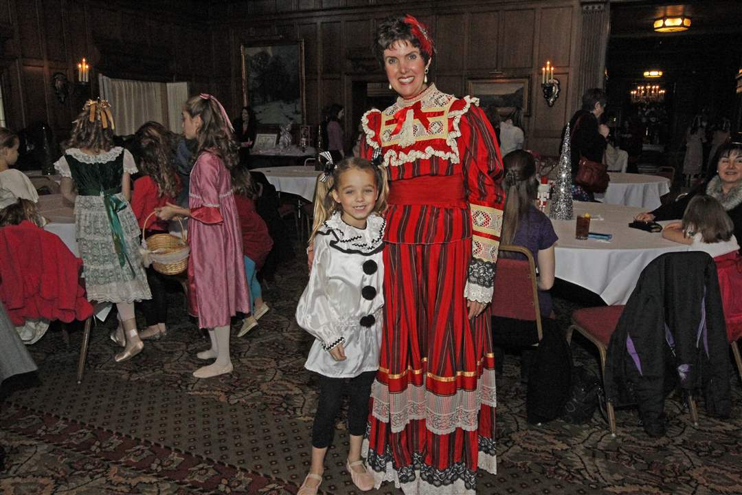 Kiera Lang, 7, left, and Patti Lewandowski, right, enjoy the annual Tea with Clara and Friends.