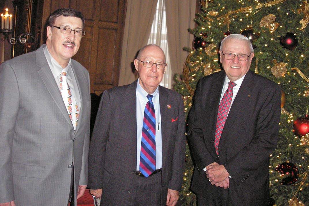Standing near the traditional Toledo Club Christmas tree is Post Cdr Ted Jenkins (center), flanked on his left by 2nd Vice Cdr Richard Schroeder and on the right by 1st Vice Cdr Chris Hansen.