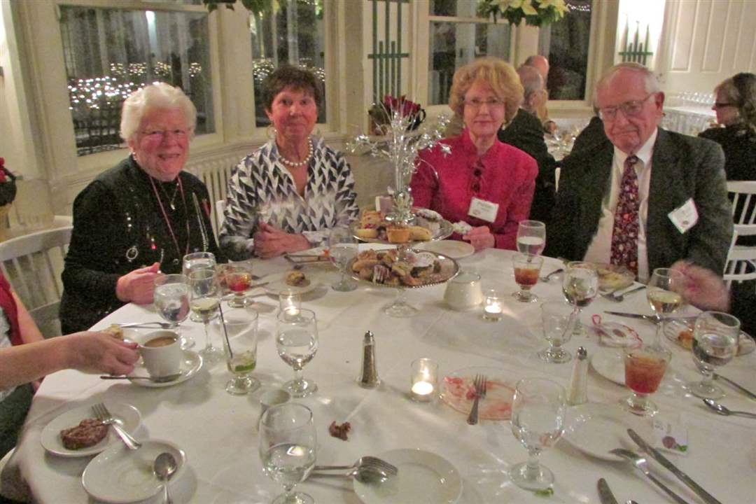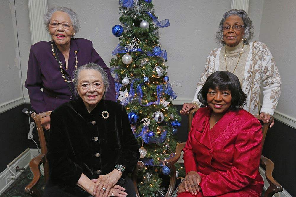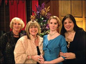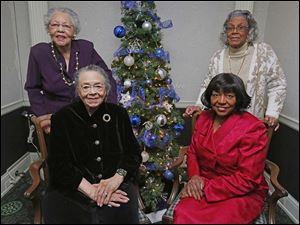 Dorothy Smith, back left, Diana Minor, back right, with Dora A. Garner, front left, and Laura Palmer, front right, at the Coterie Christmas party at the Toledo Club.