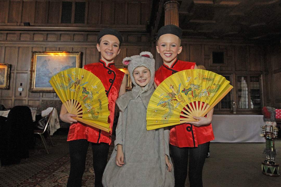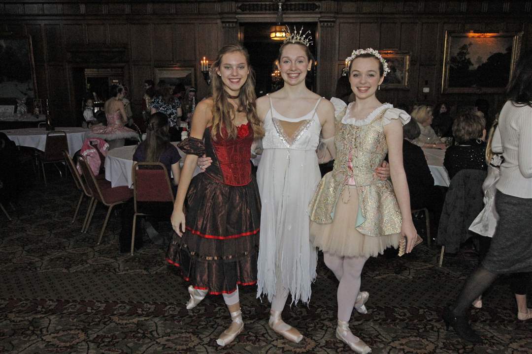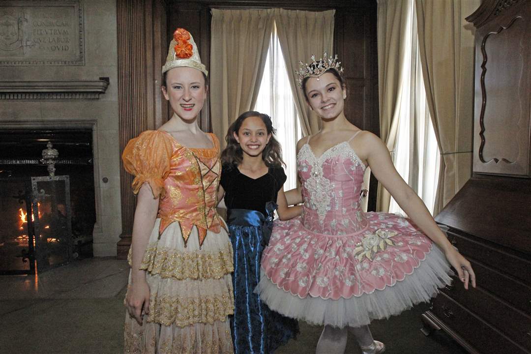 Players Charlotte Thurston, left, Emily Clark, McKenzie Beaverson, right, enjoy the annual Tea with Clara and Friends presented.