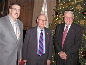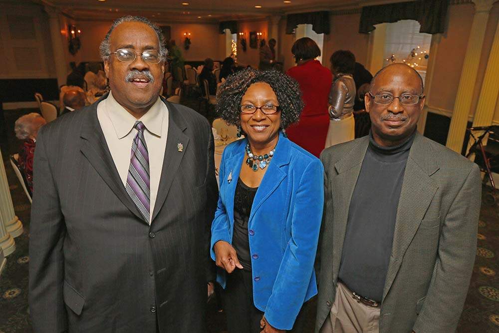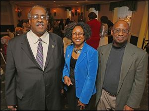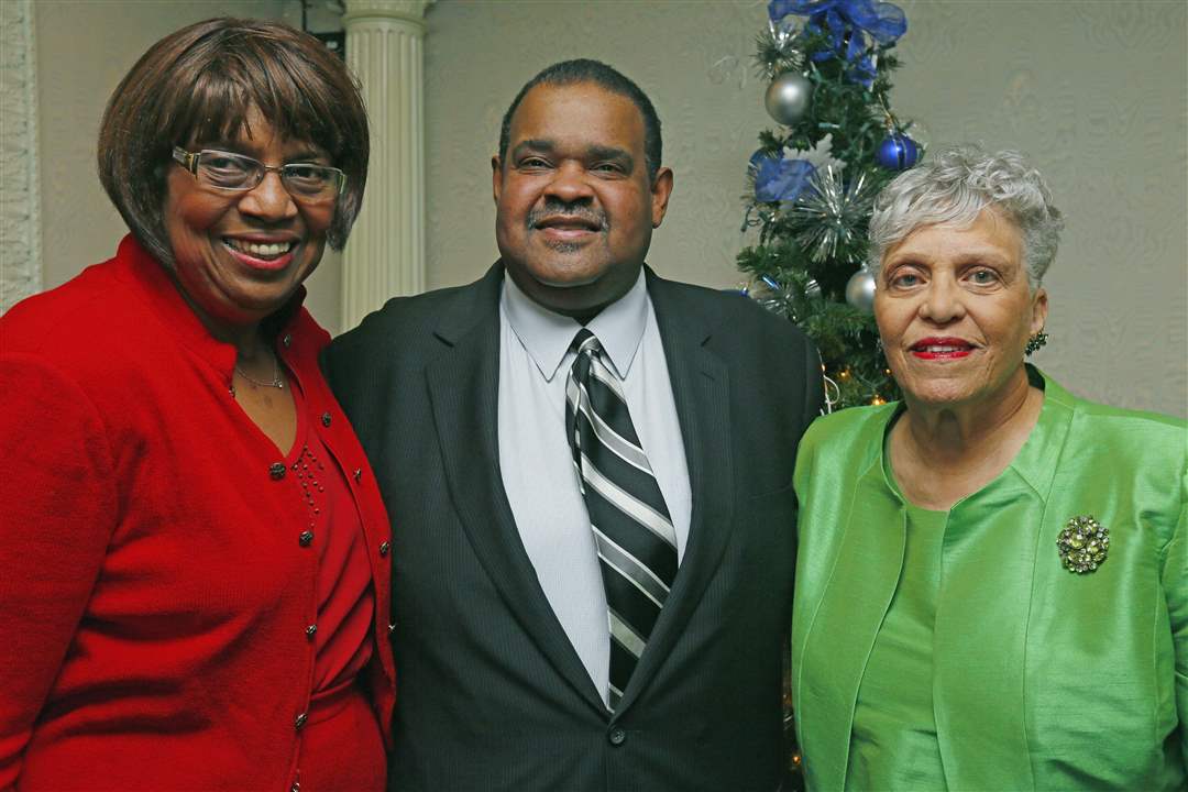 Harry Brown, left, Shirley Crockett and laMont Stewart, right, at the Coterie Christmas party at the Toledo Club.