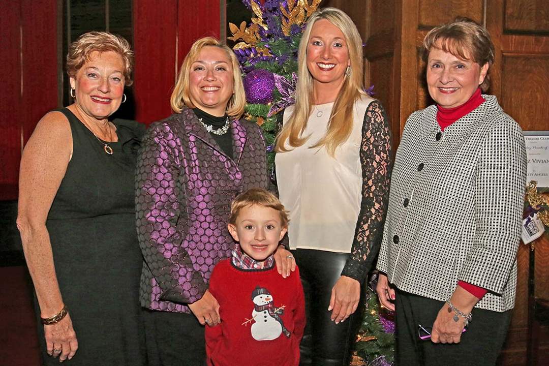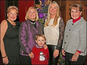 Co-chair Suzie Hahn, left, Clare Gorski, center left, Charlie Gorski, 6, center, co-chair Linsey Ansberg, center right, Marsha Molmar, center right, attended the Junior League party at the Toledo Club.