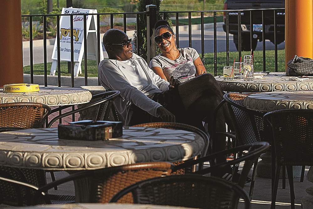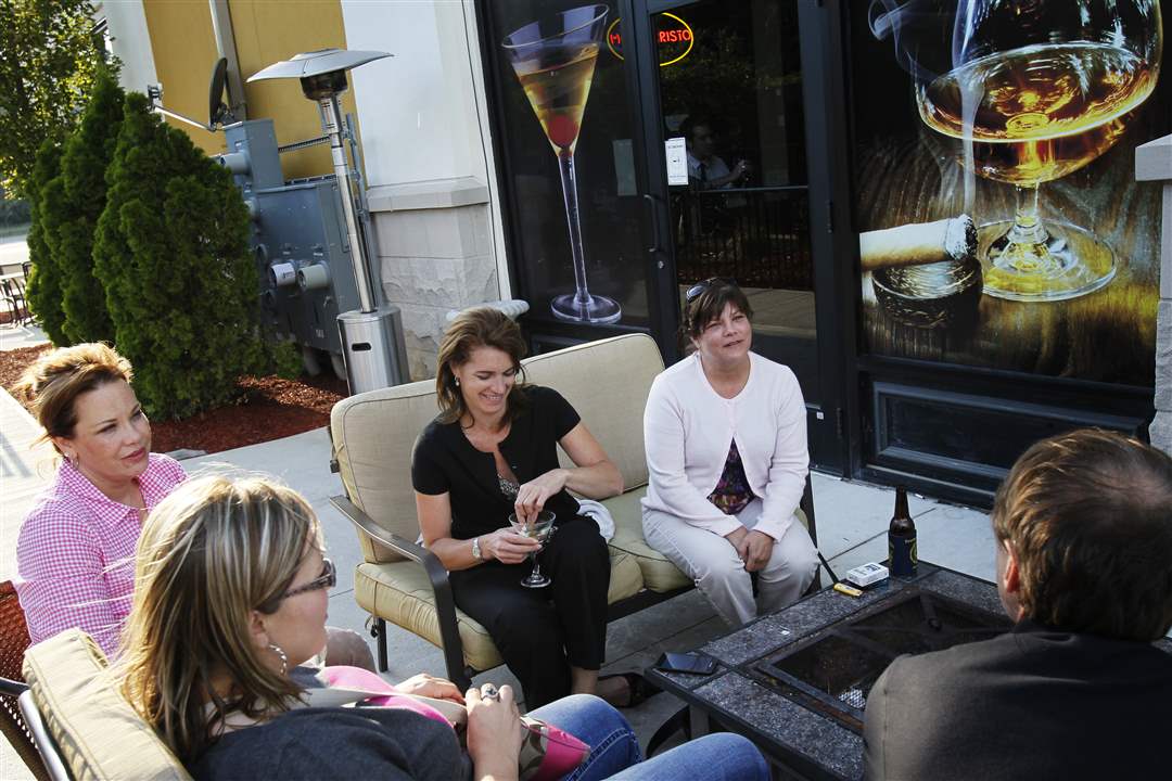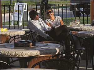 Dennis Hopson, left, and LaZonya Carnes, both of Toledo, relax on the patio of Tres Belle Wine & Martini Bar in Perrysburg.