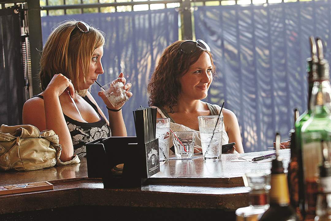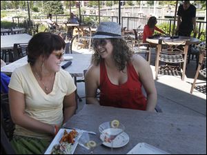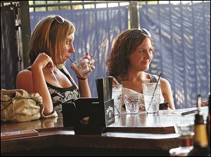 Ashley Goldstein, of Perrysburg, left, and Megan Rinehart, of Toledo, right, drink together at the bar on the patio at Arnie's in Perrysburg.