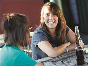 Rachel Wiltse, of Sylvania, left, and Shannon Brill, of Toledo, share a drink at the Village Inn in Sylvania.