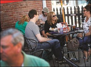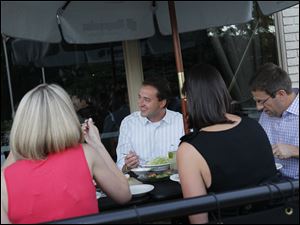 Matt Maley, of Sylvania, center, shares dinner at Treo Cafe with friends who were visiting for a high school reunion.