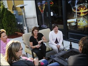 From left, Erin Goff, of Virginia, Karissa Maxwell, of Oklahoma, Mitzi Mazzullo, of Perrysburg, Vanda Stauffer, of Michigan, and Louis Parsons, of Texas, share a drink at the Tres Belle Wine & Martini Bar in Perrysburg.