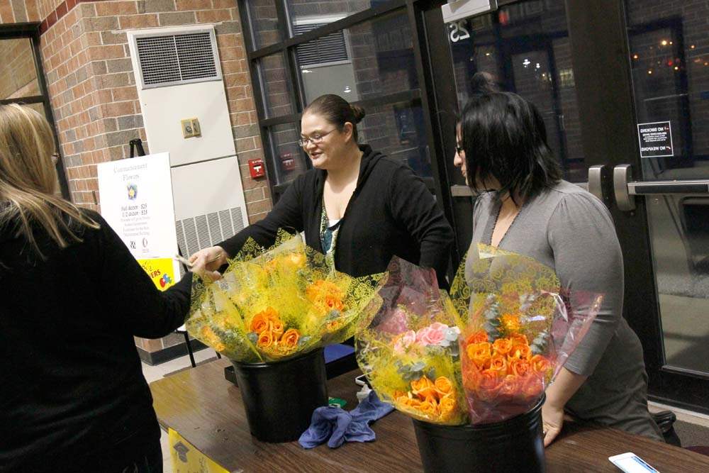 Vice president of student government Marlissa Nordhaus, center, works with Nicole Buccalo, right, to sell flowers to the families of graduates.