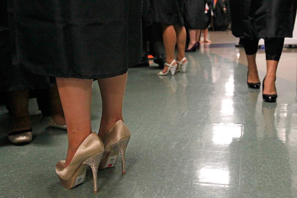 Sumer Abdulhadi, left, joined other graduates in wearing ornate shoes.